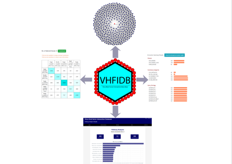 Virus-Host Factor Interaction Database (VHFIDB) is a comprehensive and beneficial database which includes a wide array of host factors (essential and antiviral) associated with virus infections. This database encompasses detailed information regarding different host factors and their functions in respect of virus biology. The data has been keenly curated from the available published articles which focus on host factors identified through siRNA based gene knockdown approaches, CRISPR-cas based gene knockout approaches, etc. or by any other techniques.